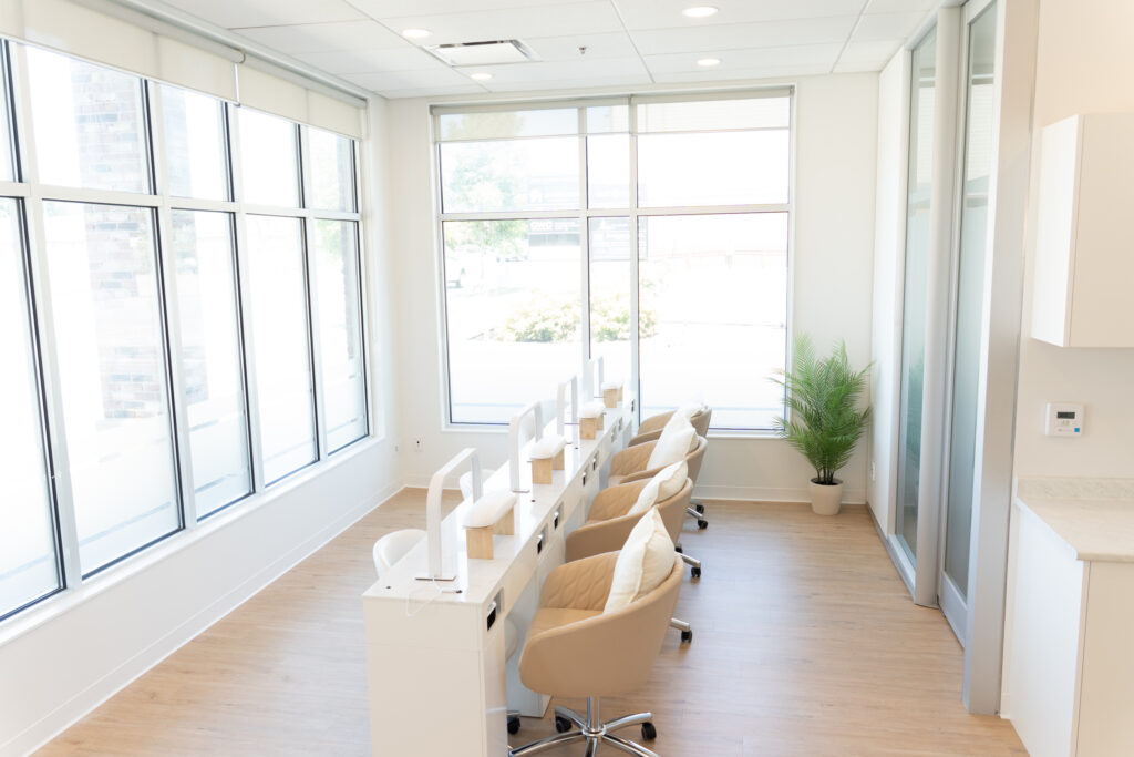Aura Nails offers a serene, thoughtfully designed space with lots of windows. From ergonomic seating to flawless lighting, every detail reflects our commitment to creating a luxurious, relaxing experience you’ll remember.